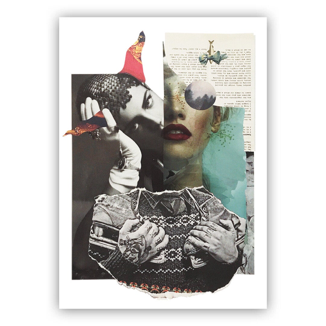 Alkuperäisestä paperikollaasista tehty taidejuliste. Julisteessa on painettu valkoinen reunus, joka kehystää aiheen kauniisti. Postit ilmaiseksi 100 € tilaukseen.